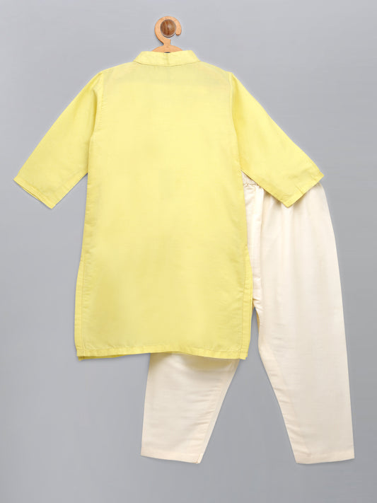 Lime Yellow kurta with Attached Jacket and Pyjama