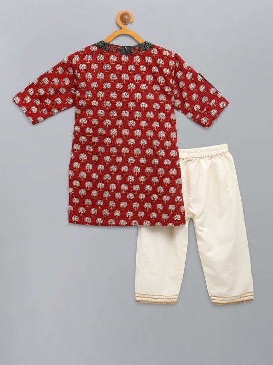 Red Printed Kurta with Pyjama