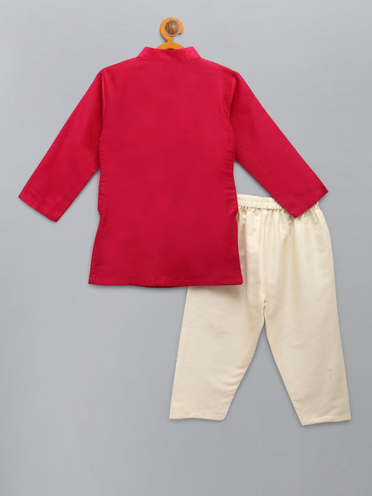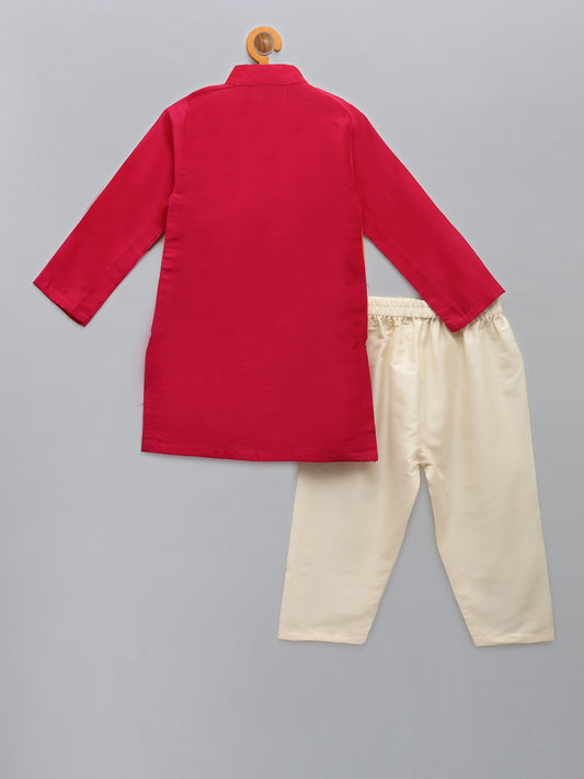 Sibling Love Red Embroidered kurta with Beige Pyjama