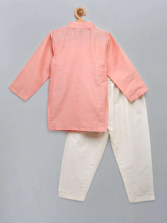 Patel Peach kurta with Attached Jacket and Pyjama