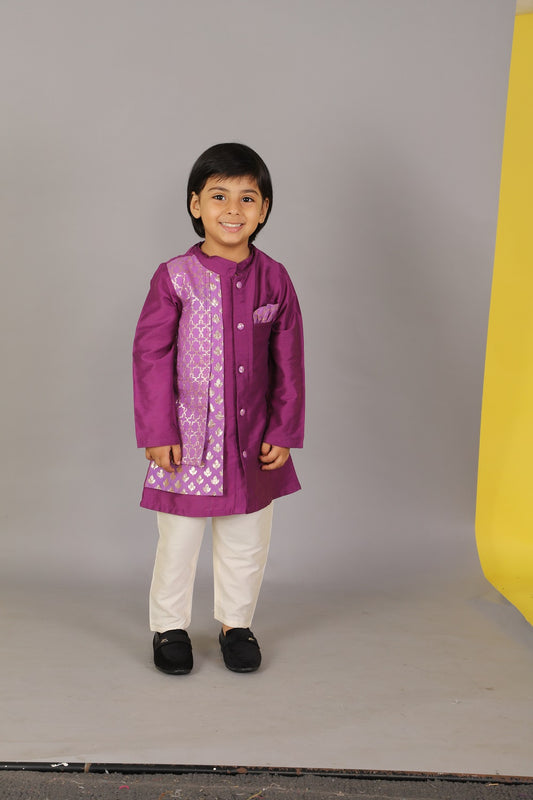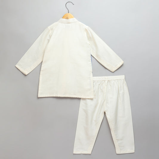 Beige Kurta Pyjama with Laxmi goddess Emb Jacket