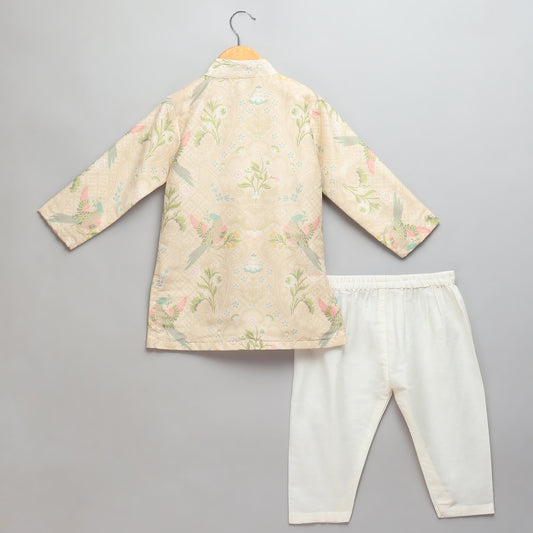 Parrot Printed Kurta Pyjama with Attached pastel jacket