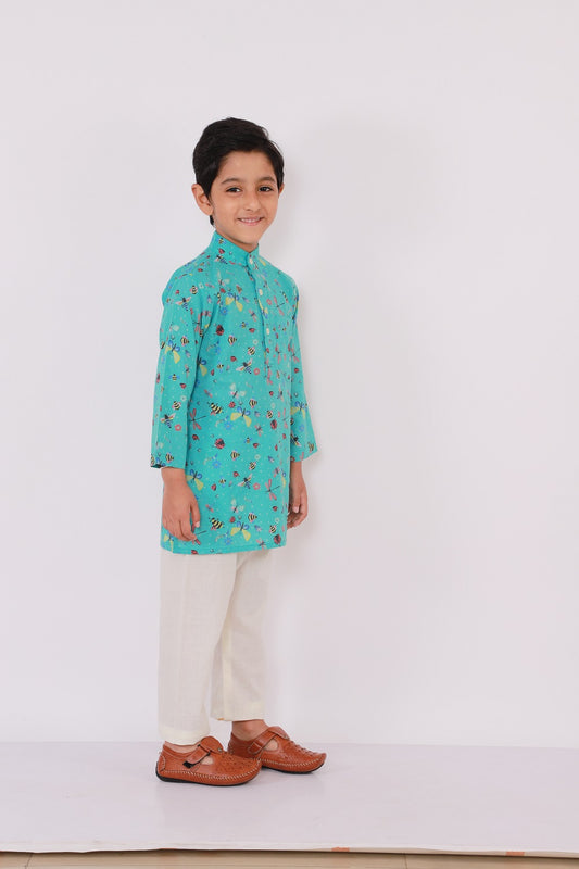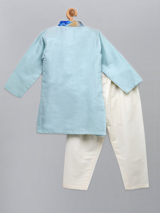 Pastel Blue Kurta with Printed jacket attached Kurta Pyjama
