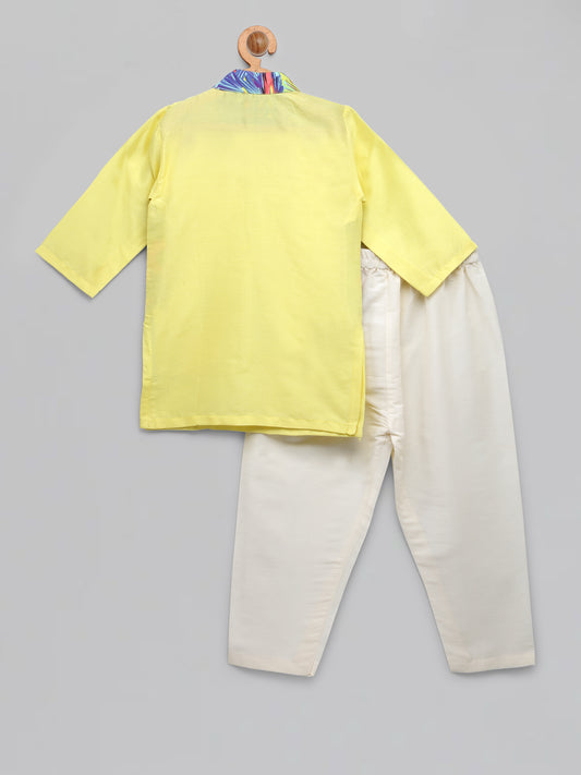 Lime Yellow Kurta with Printed jacket attached Kurta Pyjama