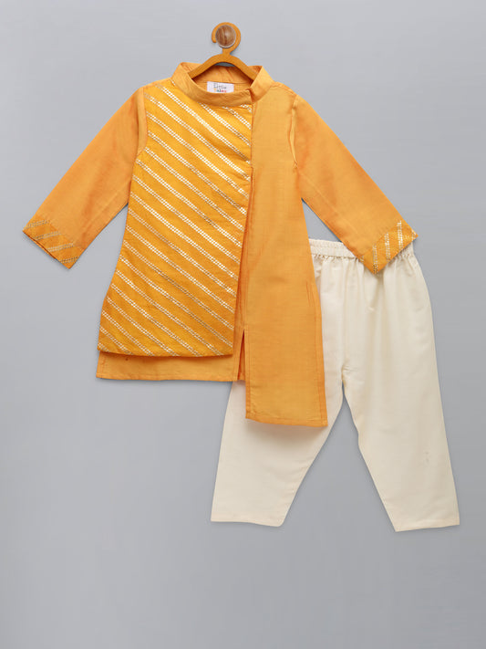 Lime Yellow kurta with Attached Jacket and Pyjama