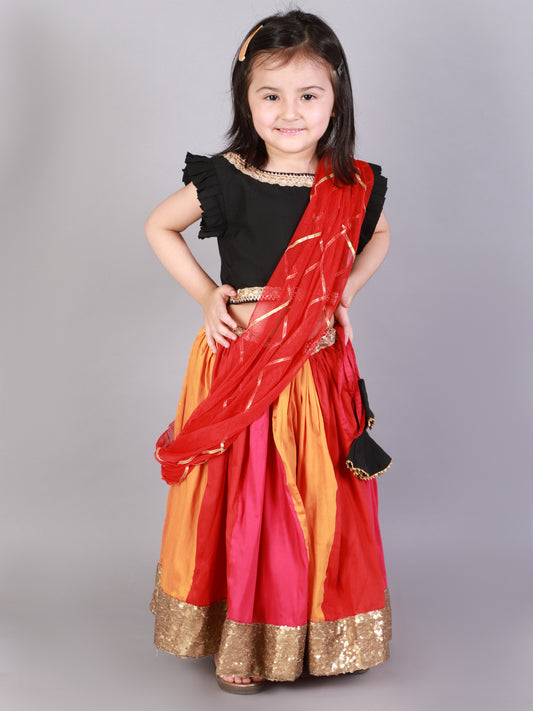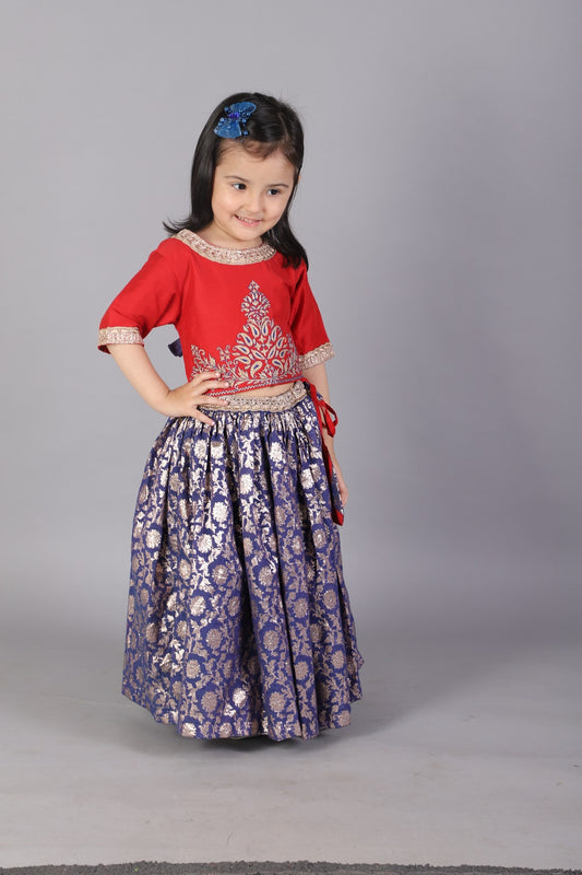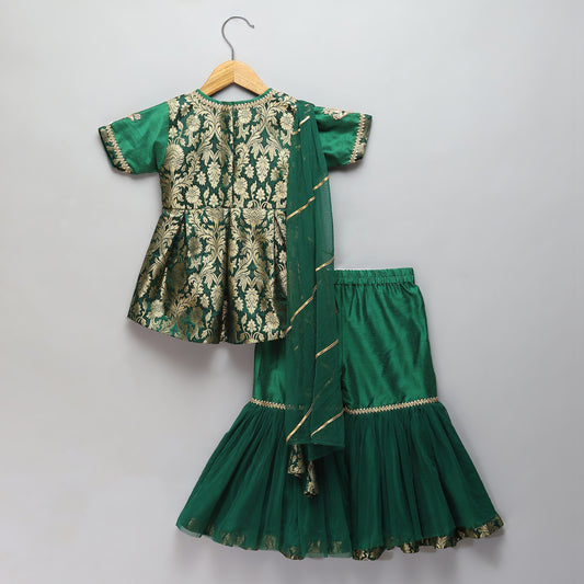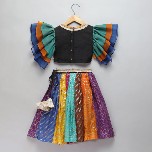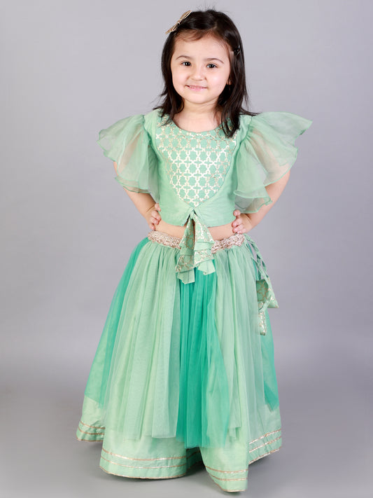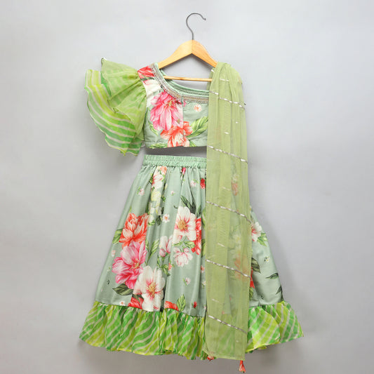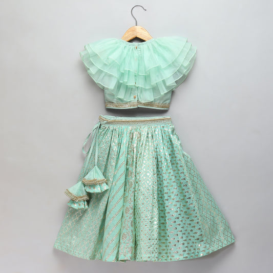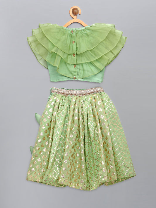 Lime Green Organza Ruffled blouse with Cotton Zari Lehnga