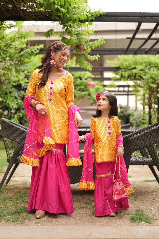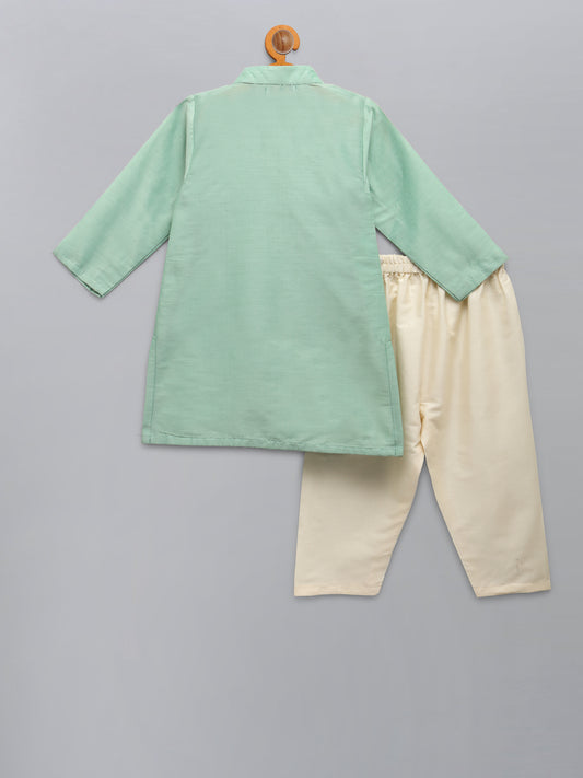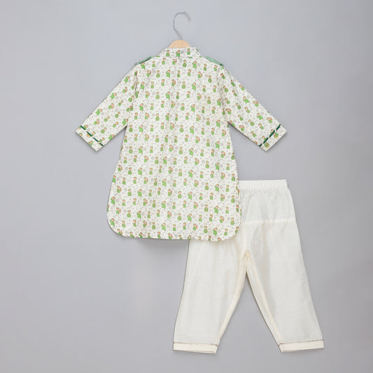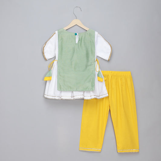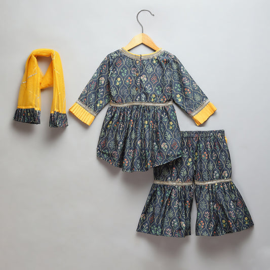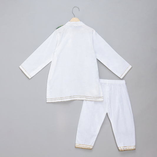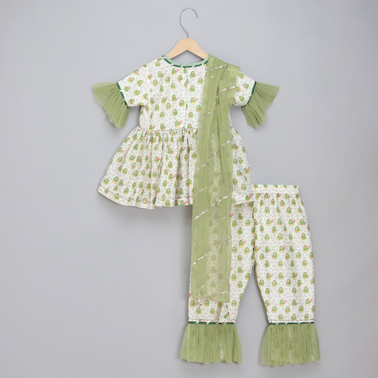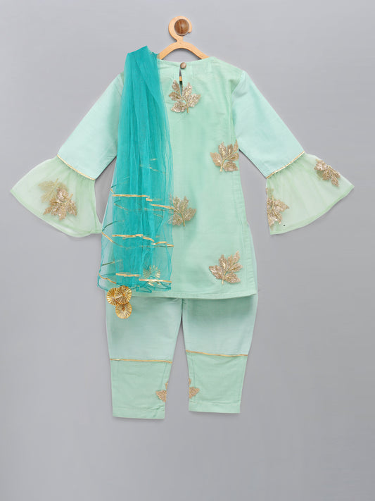 Leaf Embroidered kurta pants with embroidered net dupatta