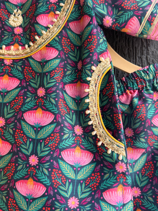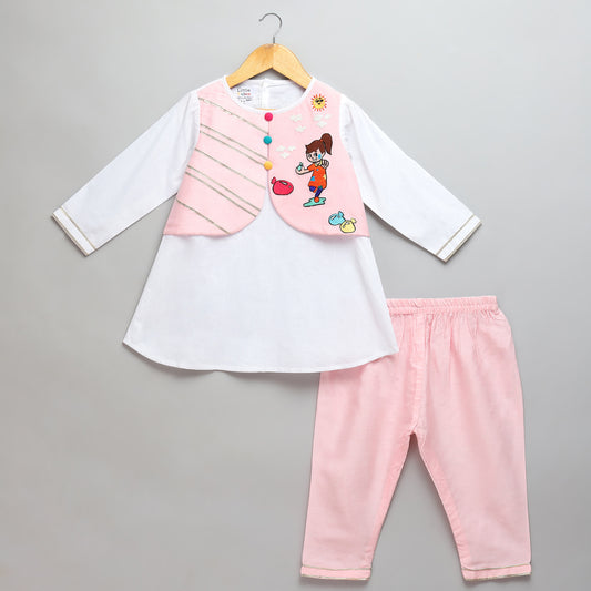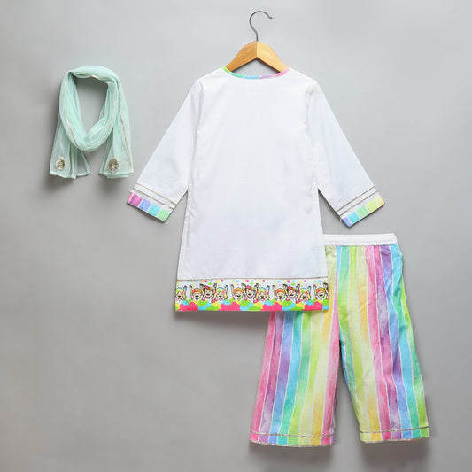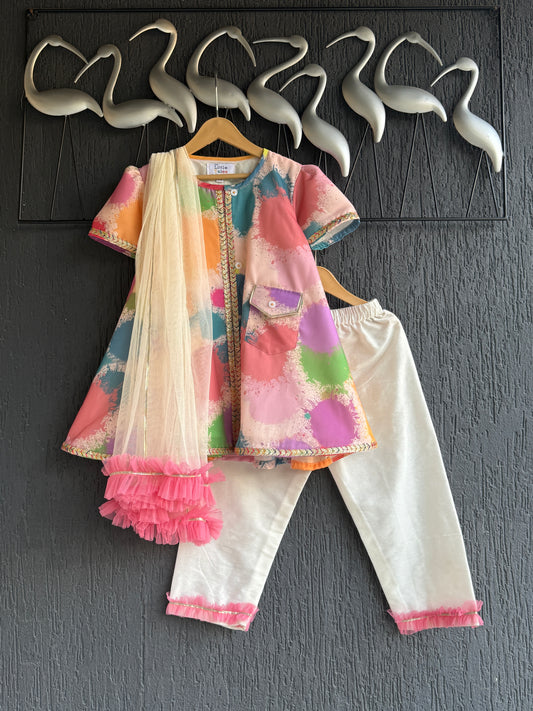 Holi Hai Girl Embroidered Kurta Pyjama set