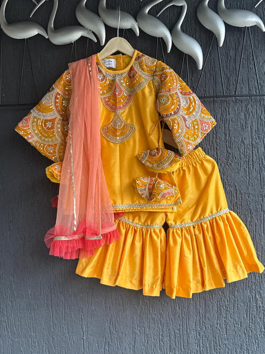 Embroidered Mustard Kurta sharara set With Net Dupatta