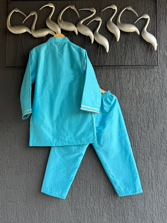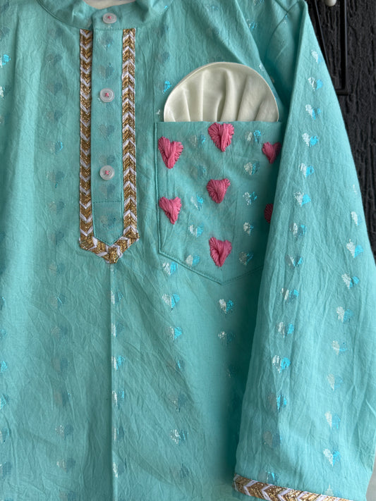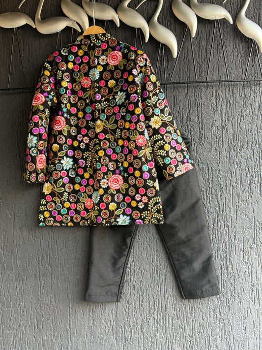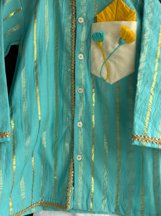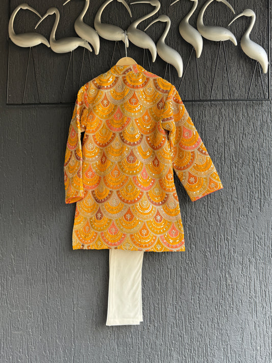 Mustard Yellow scallop embroidery Bandhgala churidar set
