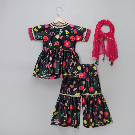 Embroidered Mustard Kurta sharara set With Net Dupatta