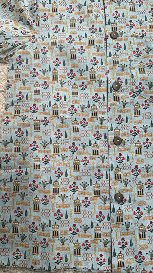 Green Mughal print unisex summer shirt shorts