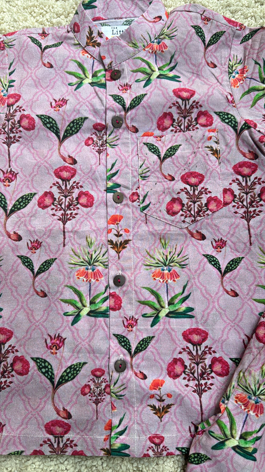 Pink floral print unisex summer shirt short