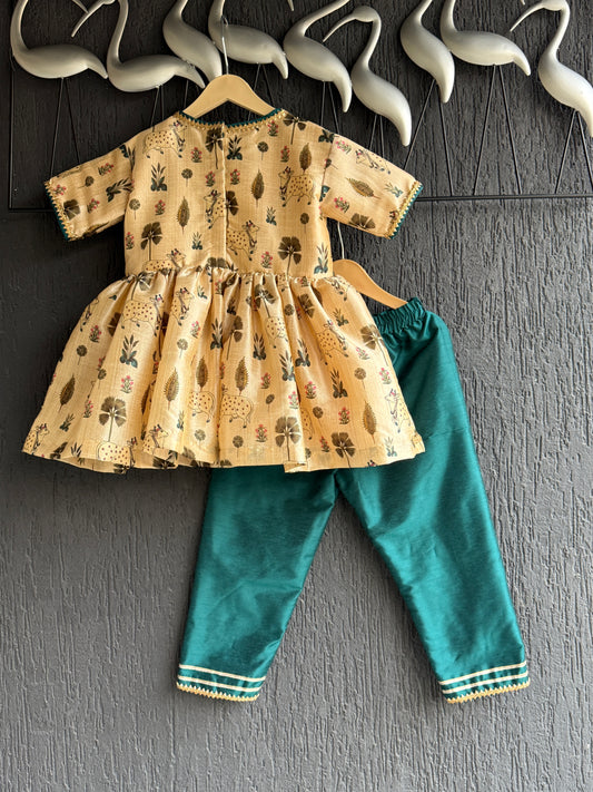 Green Krishna Embroidered Angrakha Kurta Dhoti Set