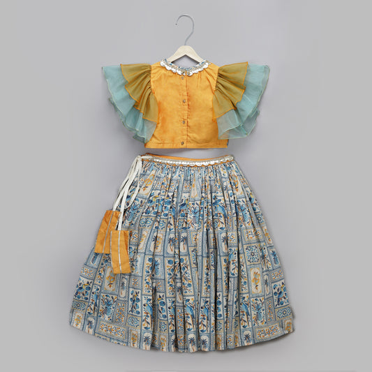 Orange Parrot printed Lehnga set