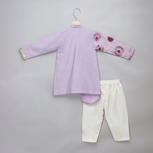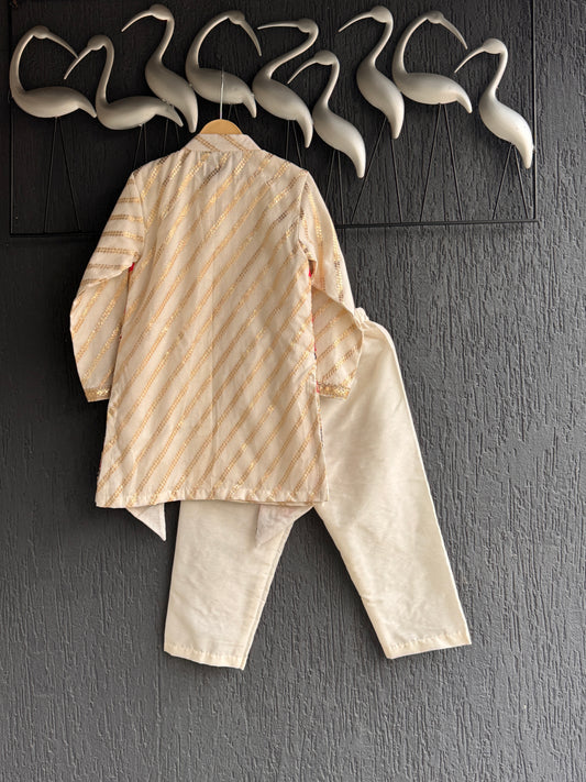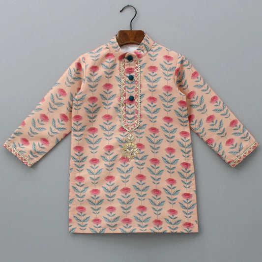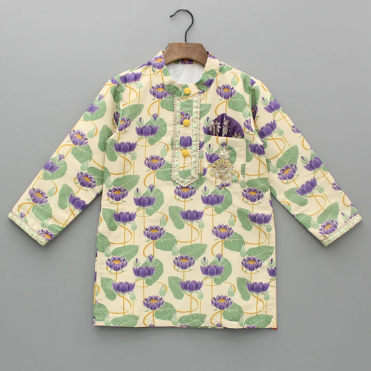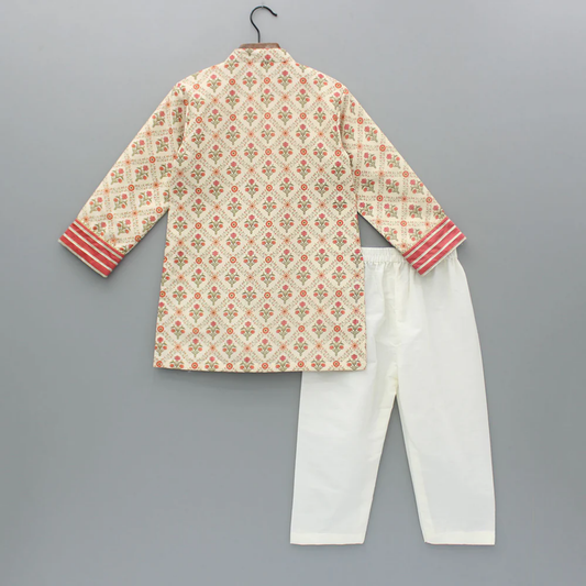 Beige Floral Printed Kurta With Pyjama (Sale)