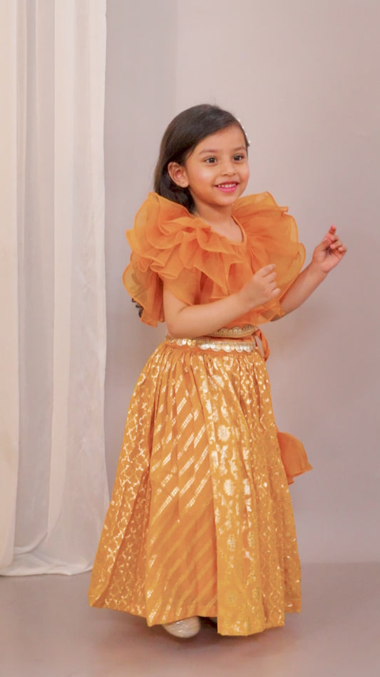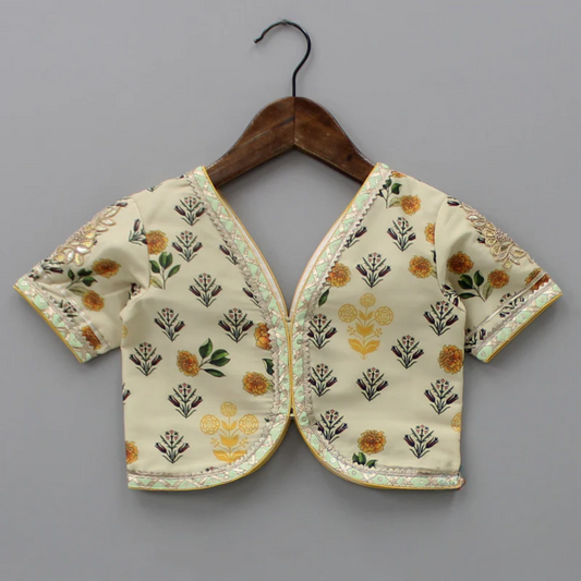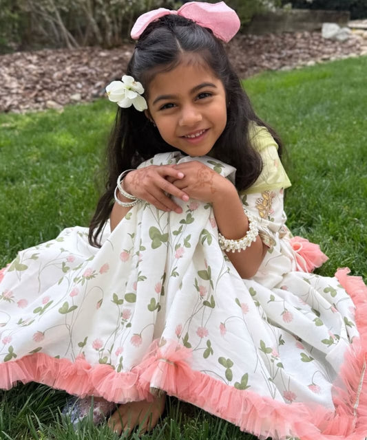 Floral Printed Crop Top With Lehenga And Net Dupatta